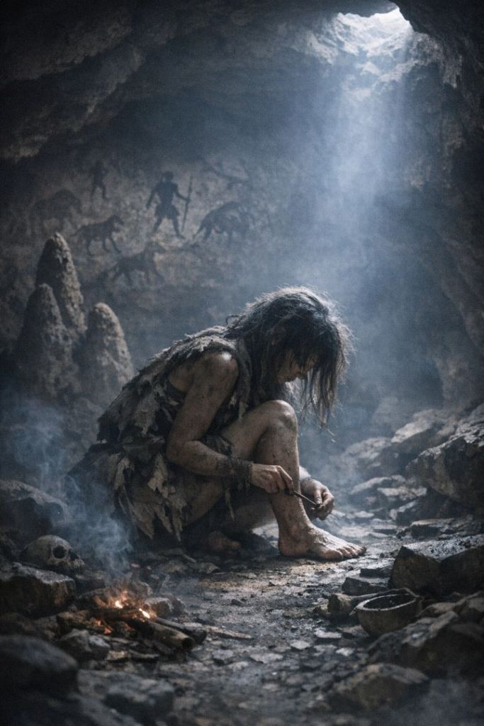 The Men camped within the cave. “Do not light a fire,” He told them. “When I return, we will hunt.” When night came, The First did not sleep. Rather, he assigned the Second as sentry, standing vigil at the cave entrance. Meanwhile, the First took this opportunity, as a time to explore. He carried a flashlight.