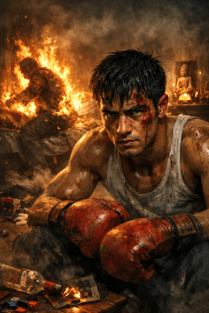 The ref pries my hands loose before I realize what I’m doing. I’ve spat at him, yelled profanity. His body convulses, but he’ll live.