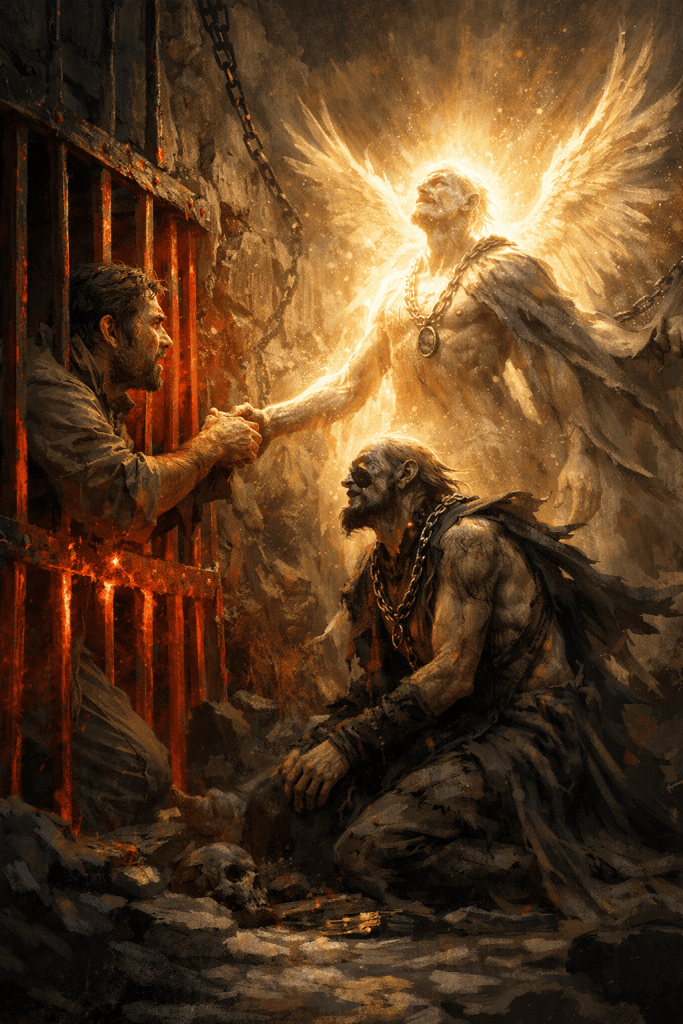 I rested on the floor of my cell. I felt the embers, and the incendiary coals. In the dungeon came the light of the Enslaver.